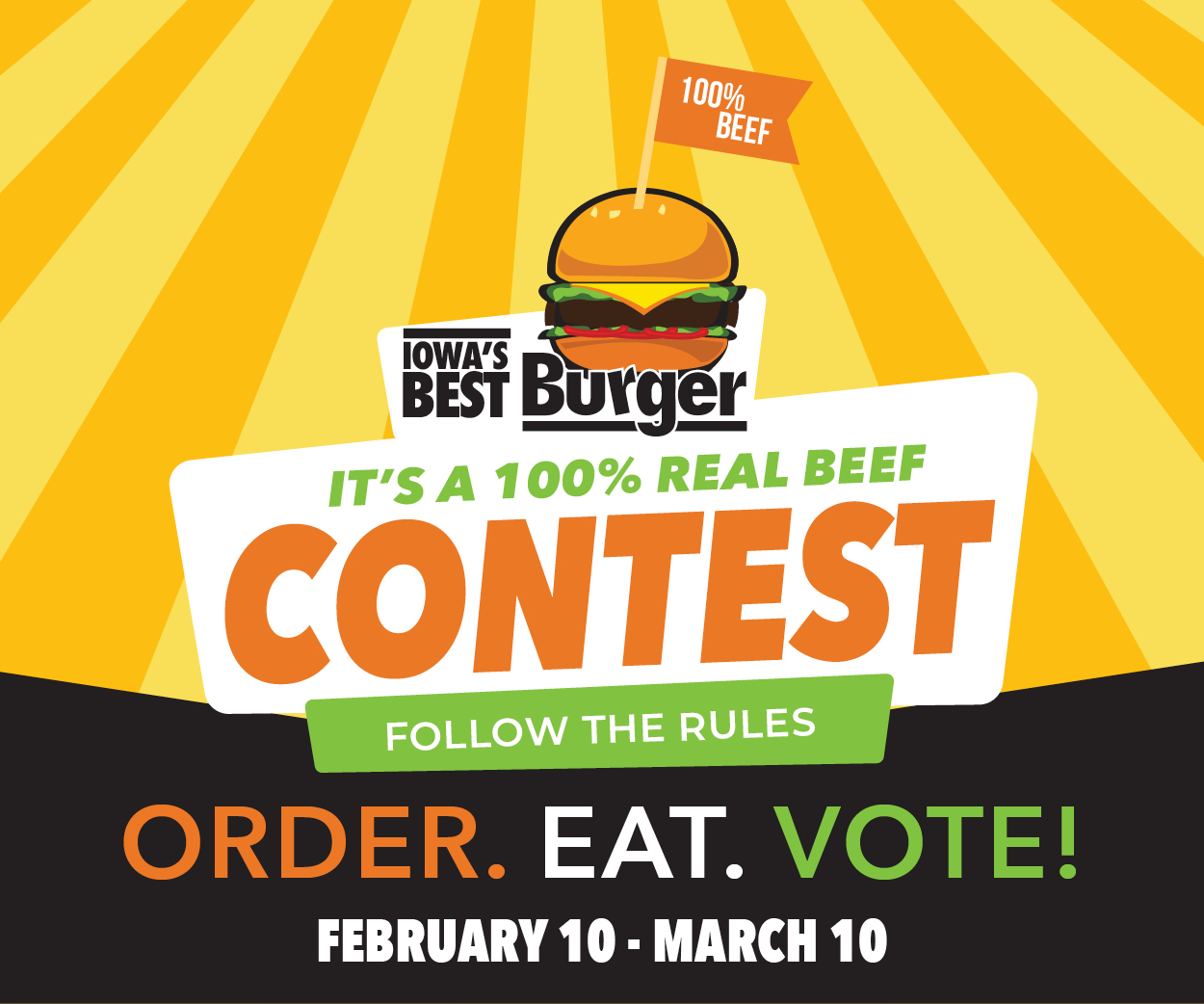 About Iowa’s Best Burger: The Iowa’s Best Burger contest is funded by the Iowa Beef Industry Council through the Iowa State Beef Checkoff and sponsored in-part by the Iowa Beef Industry Council. The designation as Iowa’s Best Burger comes after a two-phase competition sponsored by the Iowa Cattlemen’s Association and Iowa Beef Industry Council. The first phase is based on votes from the public. For a month, burger lovers voted for their favorite Iowa burger online, submitting nearly 6,500 votes representing more than 500 restaurants. At the end of the month, the 10 restaurants with the most votes are declared the “Top 10.” From there, several anonymous judges visit each of the restaurants, scoring the burger patties based on taste, doneness and presentation.