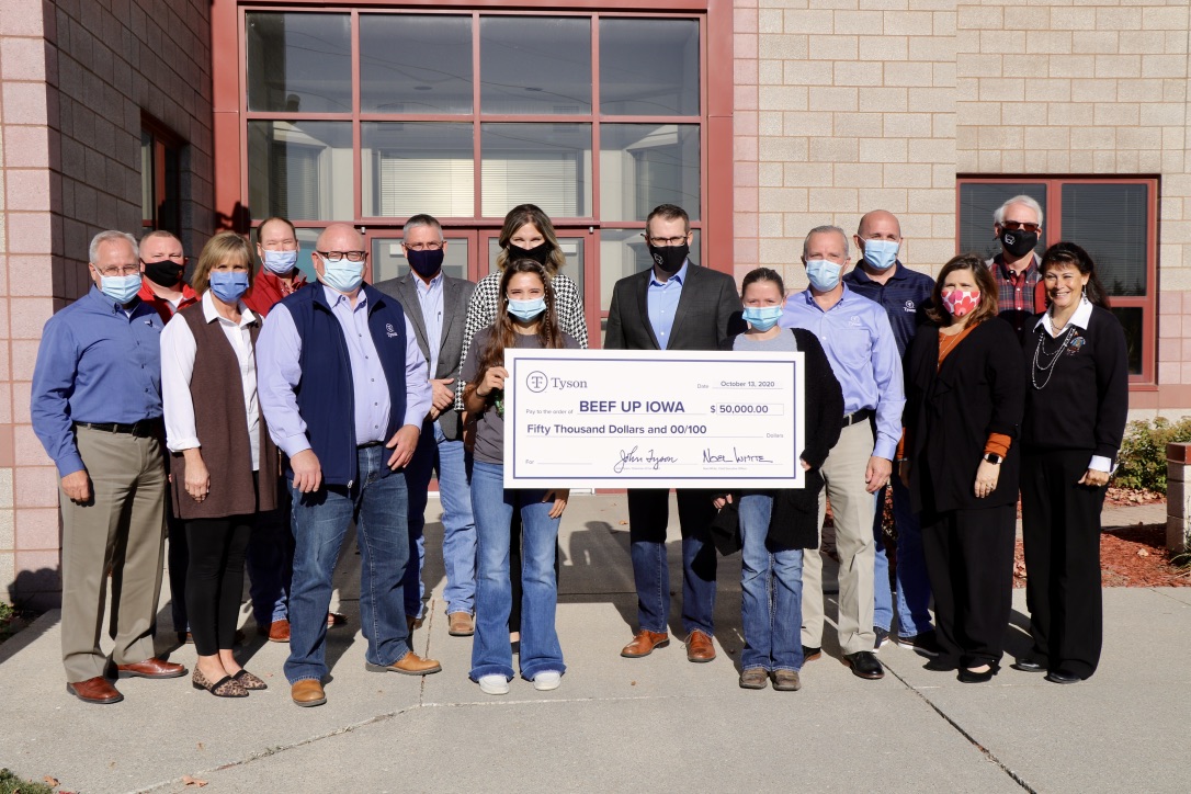 The Iowa Cattlemen’s Foundation accepted a $50,000 donation from Tyson Foods on October 13. Tyson’s gift will help purchase cattle and cover the cost of harvesting and processing.